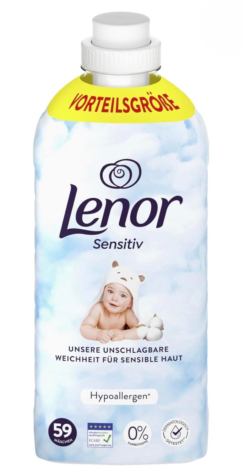 HYPOALLERGEN: Speziell entwickelte Formel für empfindliche Haut, ohne aggressive Zusatzstoffe|ERGIEBIGKEIT: Ausreichend für 59 Waschladungen, optimale Dosierung für weiche Wäsche|HAUTVERTRÄGLICHKEIT: 0% unnötige Zusätze, ideal für Familien mit sensibler Haut|WÄSCHEPFLEGE: Sorgt für angenehm weiche Textilien bei gleichzeitiger Faserschonung|ANWENDUNG: Einfache Dosierung durch praktischen Verschluss, direkt in die Weichspülerkammer geben