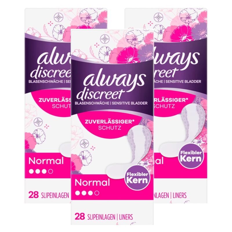 3 x 28 Always Discreet Slipeinlagen Für Blasenschwäche Normal Dünn & Flexibel