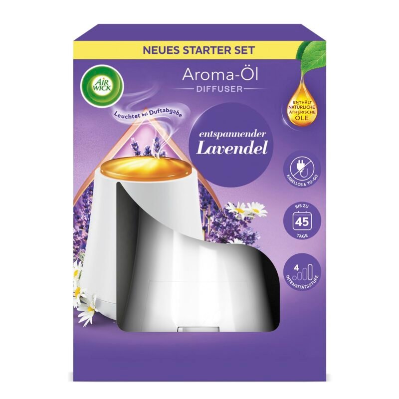 Air Wick Aroma-Öl Diffuser – Starter Set mit Diffuser und Duft-Flakon – Batteriebetrieben – Duft: Entspannender Lavendel – 1 x 20 ml ätherisches Öl + Diffuser