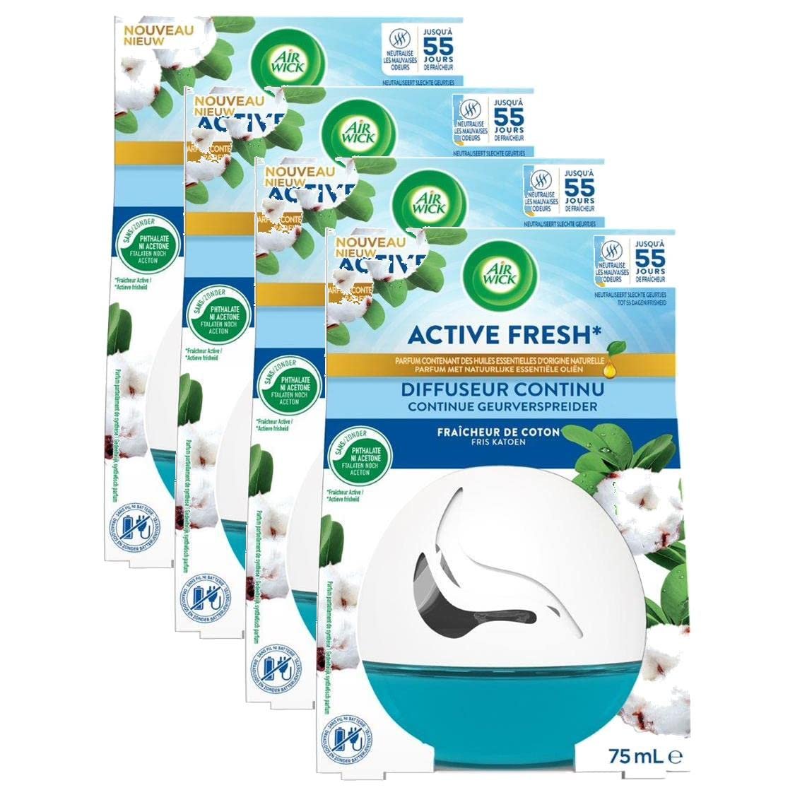 Air Wick Continus Active Fresh Cotton Diffusor, 75 ml, 4 Stück
