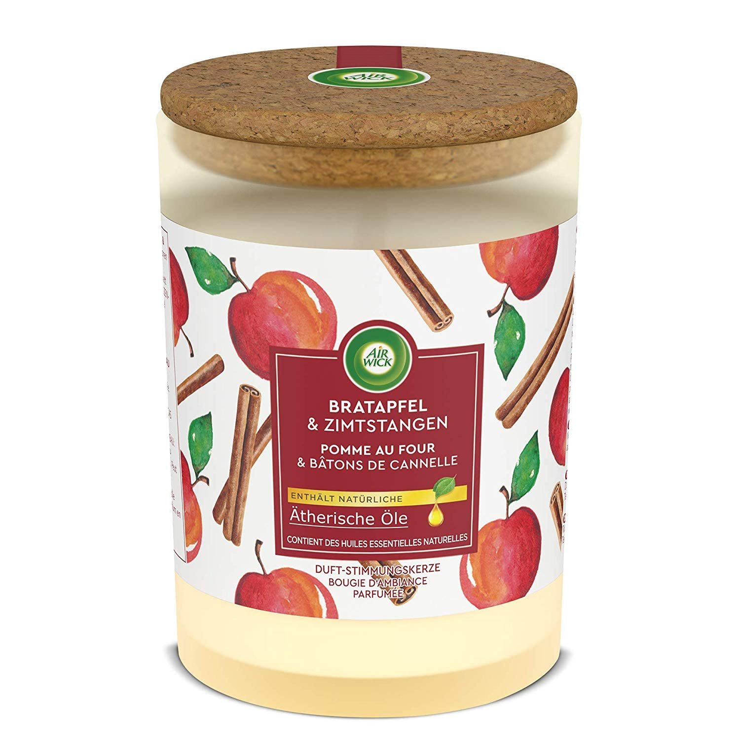 Dies ist eine Multipackung und enthält 6 Air Wick Duftkerzen|Verwandeln Sie Ihr Zuhause in eine perfekte Oase des Wohlbefindens mit einem belebenden Duft und einem angenehmen Glanz|Schaffen Sie eine gemütliche und angenehme Atmosphäre in Ihrem Zuhause|Ein bezauberndes Parfüm bis zur letzten Flamme|Gönnen Sie sich Momente der Entspannung mit dem Gourmet-Duft von Zimt und Apfel