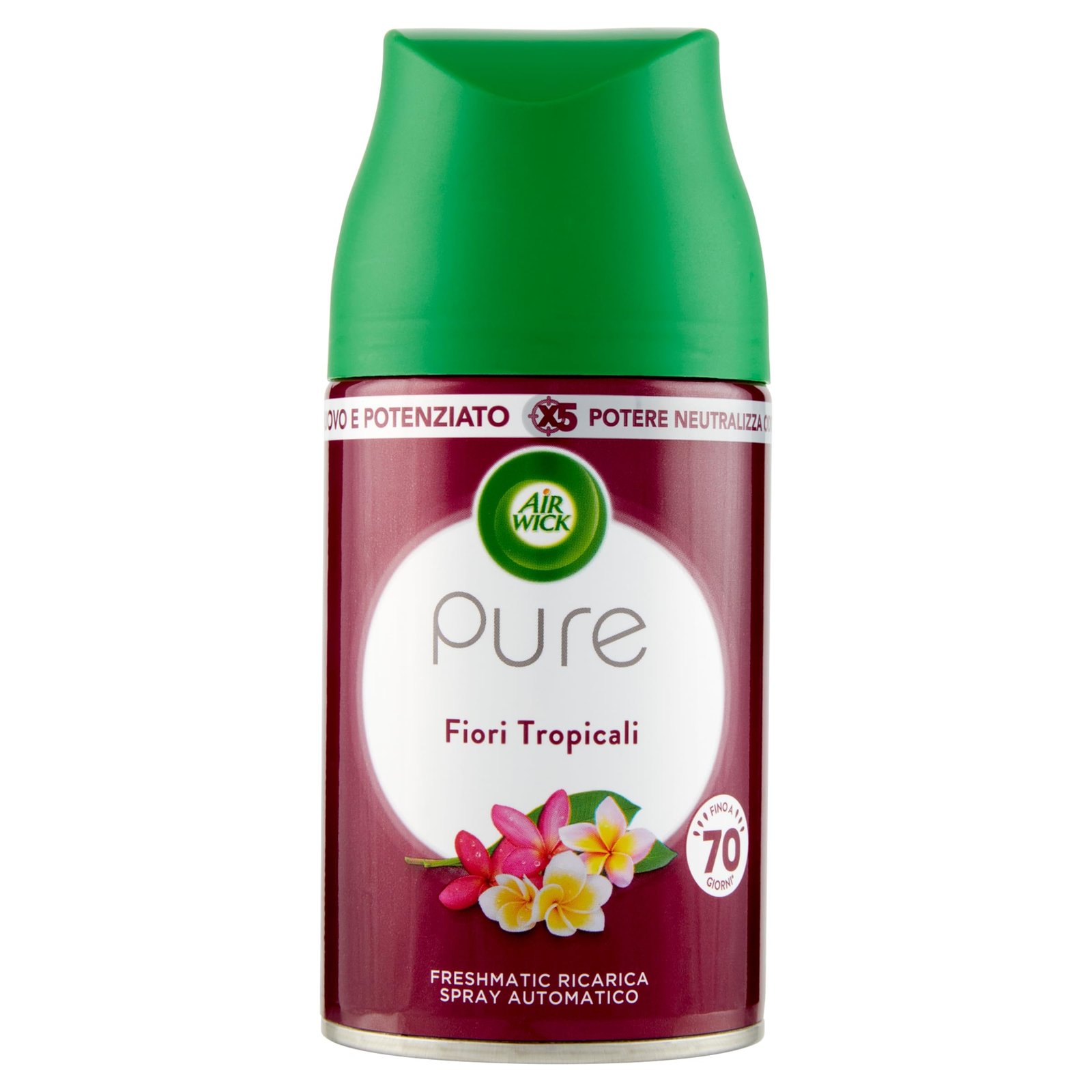 Leistungsstarke Formel: Der Duft Pure Tropische Blumen neutralisiert Gerüche und bekämpft 5 schwierige und häufige Haushaltsgerüche: Bad, Küche, Müll, Haustiere, Schimmel|Lieferumfang: Freshmatic Airwick Nachfüllpackung, Duft Pure Tropische Blumen|Spray: Verbesserte Formel ohne Zugabe von Wasser, wurde entwickelt, um einen intensiven Duft in der Umgebung für lange Zeit zu verbreiten|Duft: Blumige Noten; die verbesserte Formel neutralisiert schlechte Gerüche mit dem Duft Pure Fiori Tropen; gönnen Sie sich bis zu 70 Tage Ihres Lieblingsduftes, mit dem Gerät auf niedriger Stufe und gönnen Sie sich eine Pause|EINSTELLUNG: Verwenden Sie diese Nachfüllpackung im Freshmatic Airwick Raumduft. Wählen Sie aus den 3 Intensitätsstufen des Diffusors, die Sie bevorzugen: von einem leichten Duft bis zu einer vibrierenden Explosion