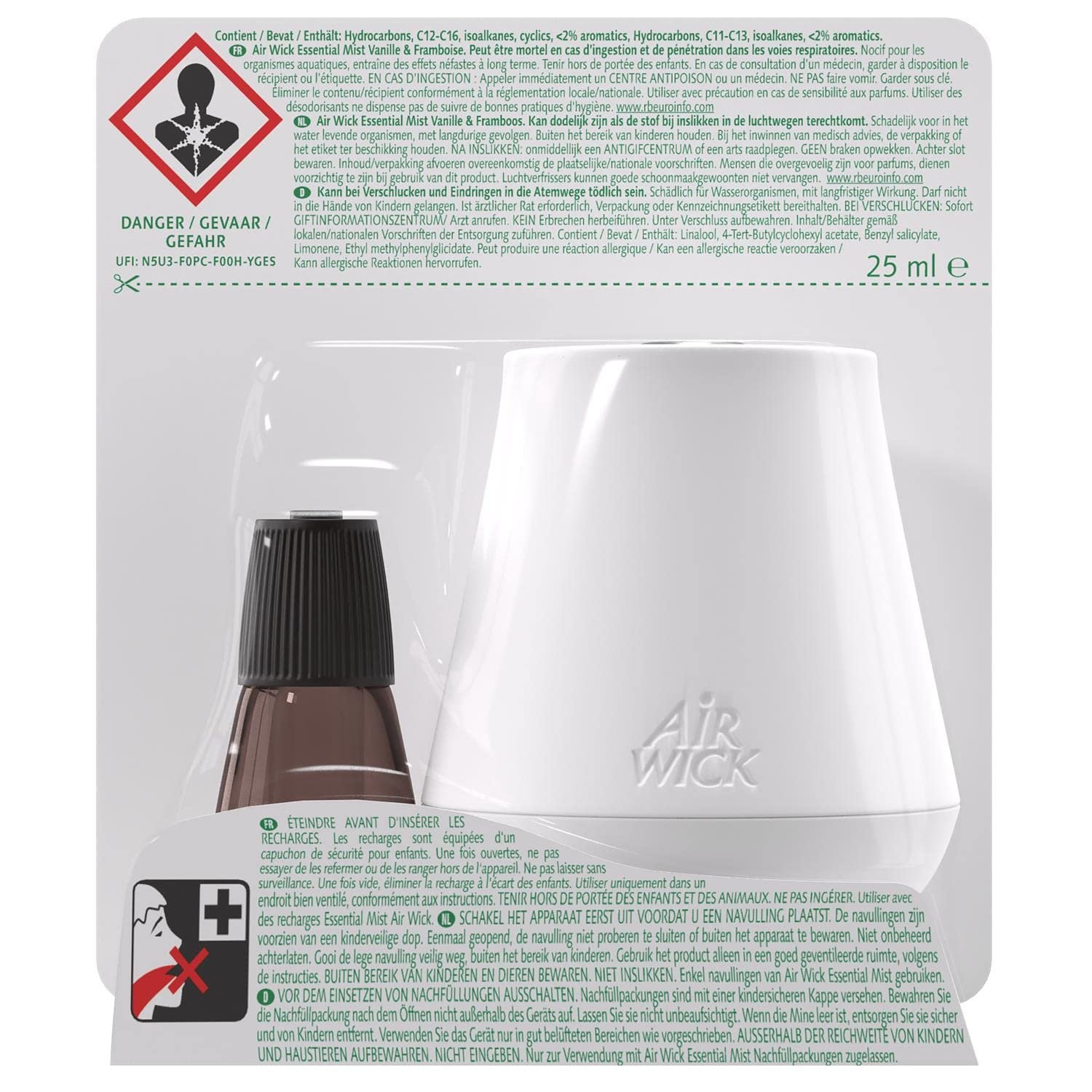 Airwick Essential Mist Duftspender Vanille und Himbeere, 1 Nachfüllpackung, 25 ml, Vanille und Himbeere