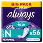 Always Daily Fresh Slipeinlagen Damen, Normal (56 Binden) Big Pack, ohne Duft, atmungsaktiv, flexibel