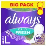 Always Daily Fresh Slipeinlagen Long, mit 100% pflanzenbasierten Fasern, 38 Stück, ohne Duft, bis zu 12 Stunden Schutz, ohne Duft