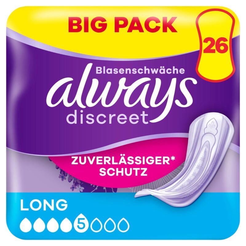Always Discreet Inkontinenzeinlagen Für Frauen Long 26 Stück Rundumschutz Unglaubliche Diskretion