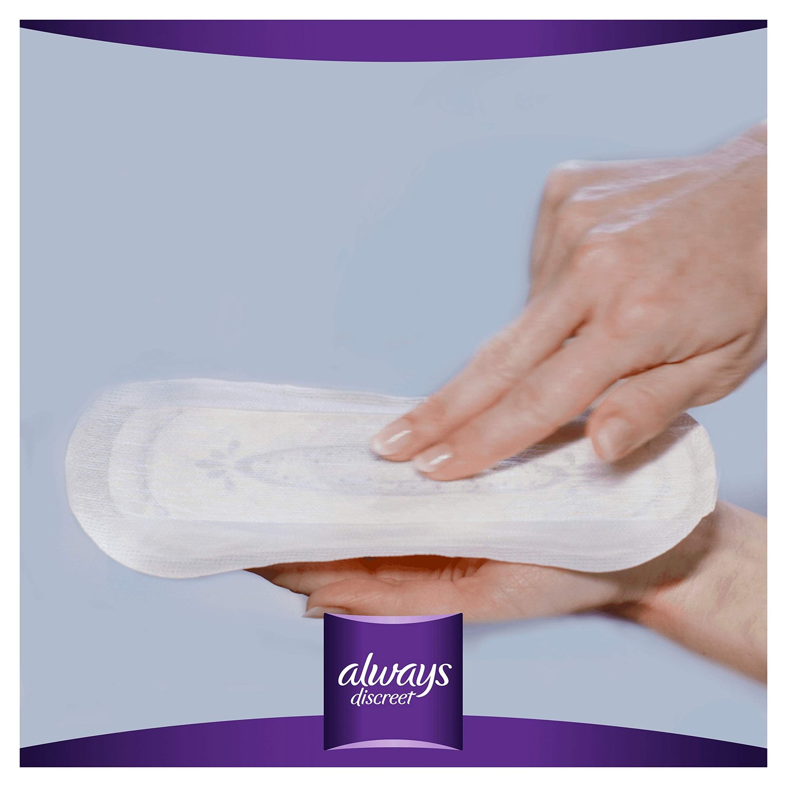 Mit Always Discreet Normal Inkontinenzeinlagen schützen Sie sich ganz einfach vor Harnverlust. Inkontinenzeinlagen sind länger als Damenbinden und bieten so mehr Schutz. Ihr ultradünnes Design sorgt für hohen Tragekomfort. Der spezielle Kern von Always Discreet absorbiert doppelt so viel Flüssigkeit wie nötig (basierend auf dem durchschnittlichen Bedarf) bei gelegentlichem Harnverlust durch Niesen oder Husten. Sie binden Feuchtigkeit und neutralisieren Gerüche – für ein frisches und angenehmes Gefühl. Einzeln verpackt für Diskretion und Komfort.