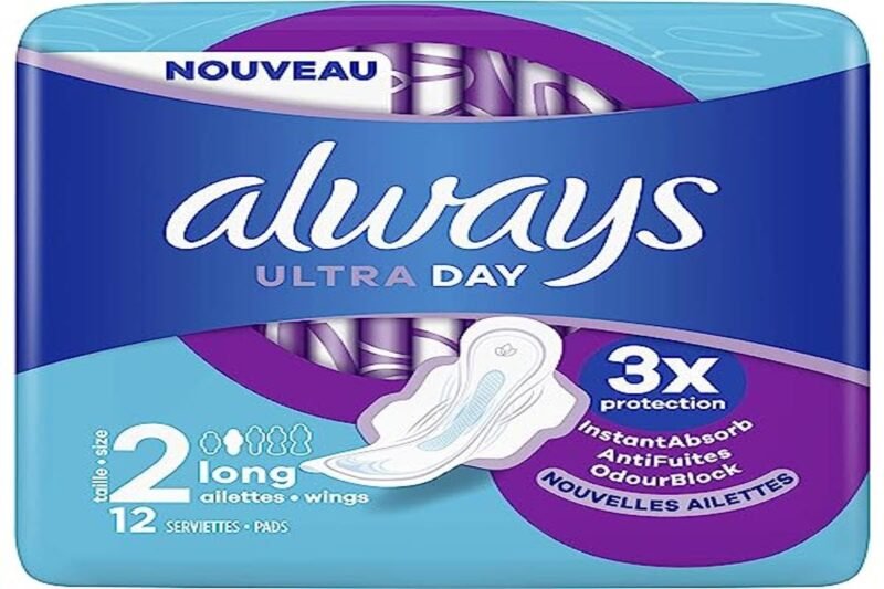 Always Ultra Damenbinden, Größe 2, lang, 12 Handtücher mit Flügeln, mittelstarker Tagesfluss, maximaler Komfort, super saugfähig und ultradünn