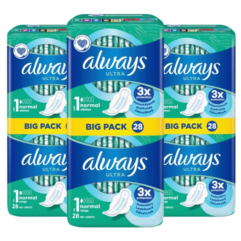Always Ultra Normal (Große 1) Damenbinden mit Flügeln, 28 pro Packung, 3 Stück, insgesamt 84 Stück