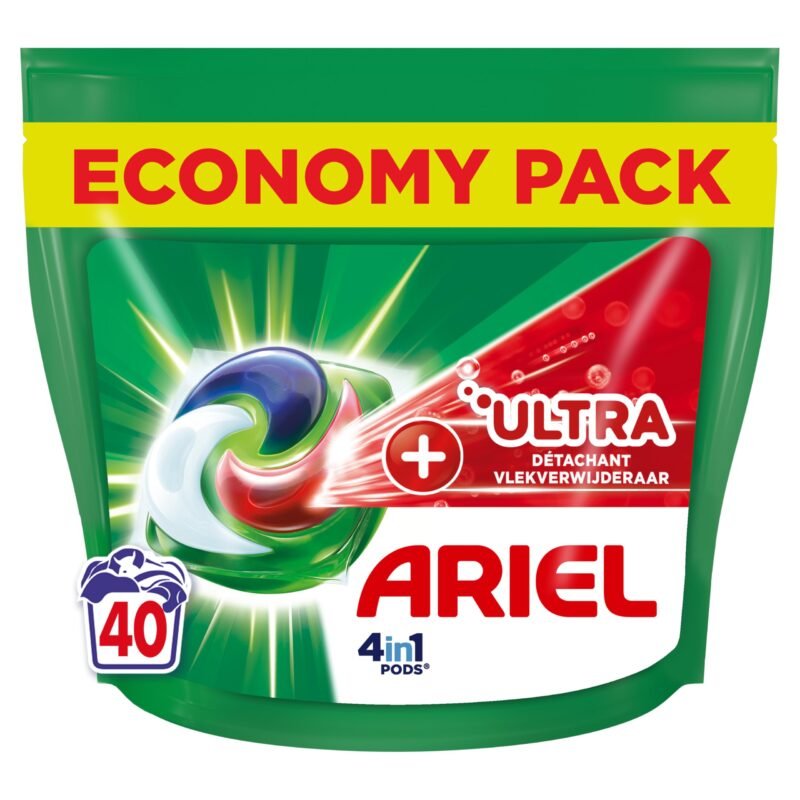 Ariel 4-in-1 Pods, Flüssigwaschmittel in Kapseln, 40 Waschgänge, Ultra-Fleckentfernungstechnologie, entfernt hartnäckige Flecken bei niedriger Temperatur, auch nach 7 Tagen, hergestellt in Frankreich