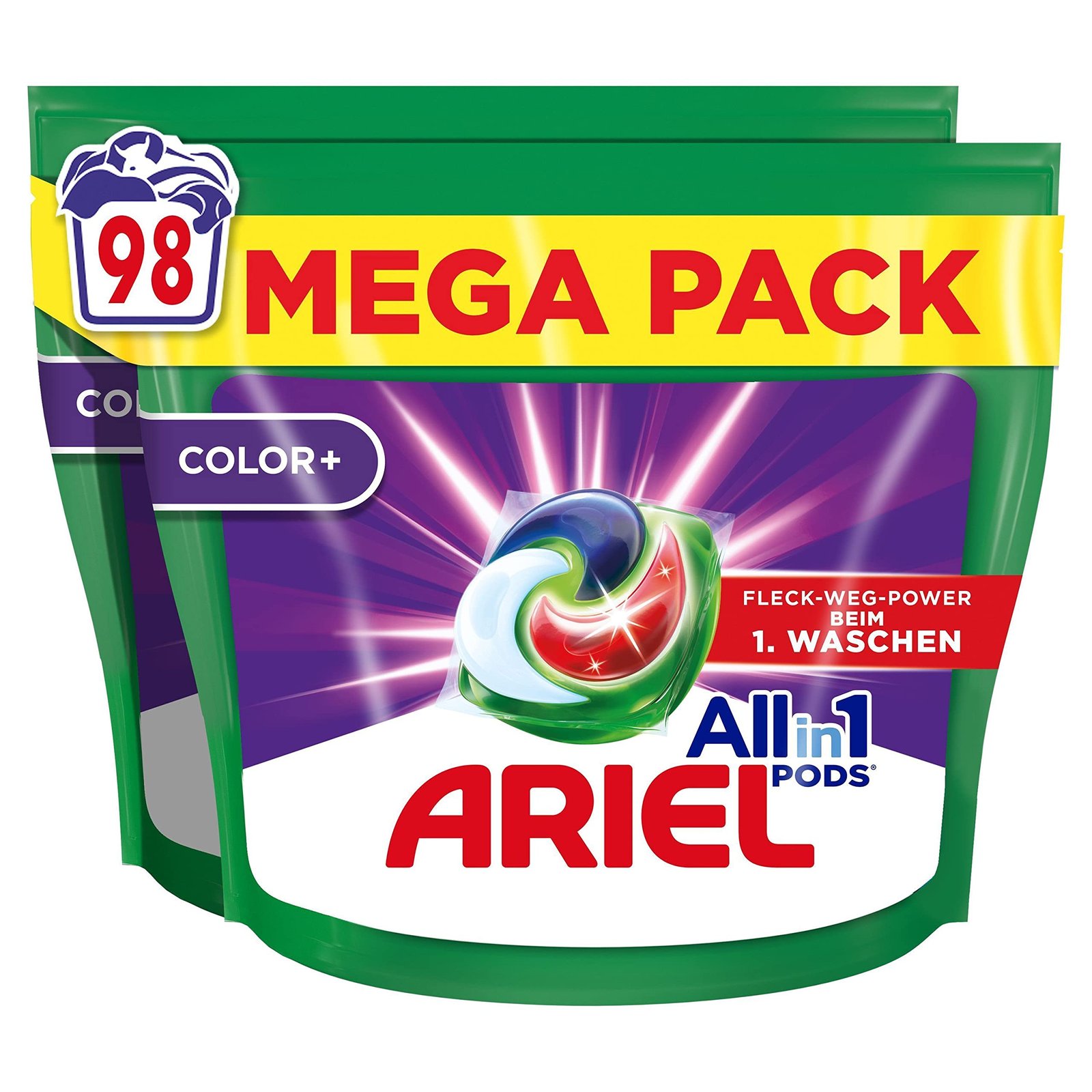 Ariel Waschmittel Pods All-in-1, Color Waschmittel, (2×49) 98 Waschladungen, Fleckenentfernung selbst bei niedrigen Wassertemperaturen