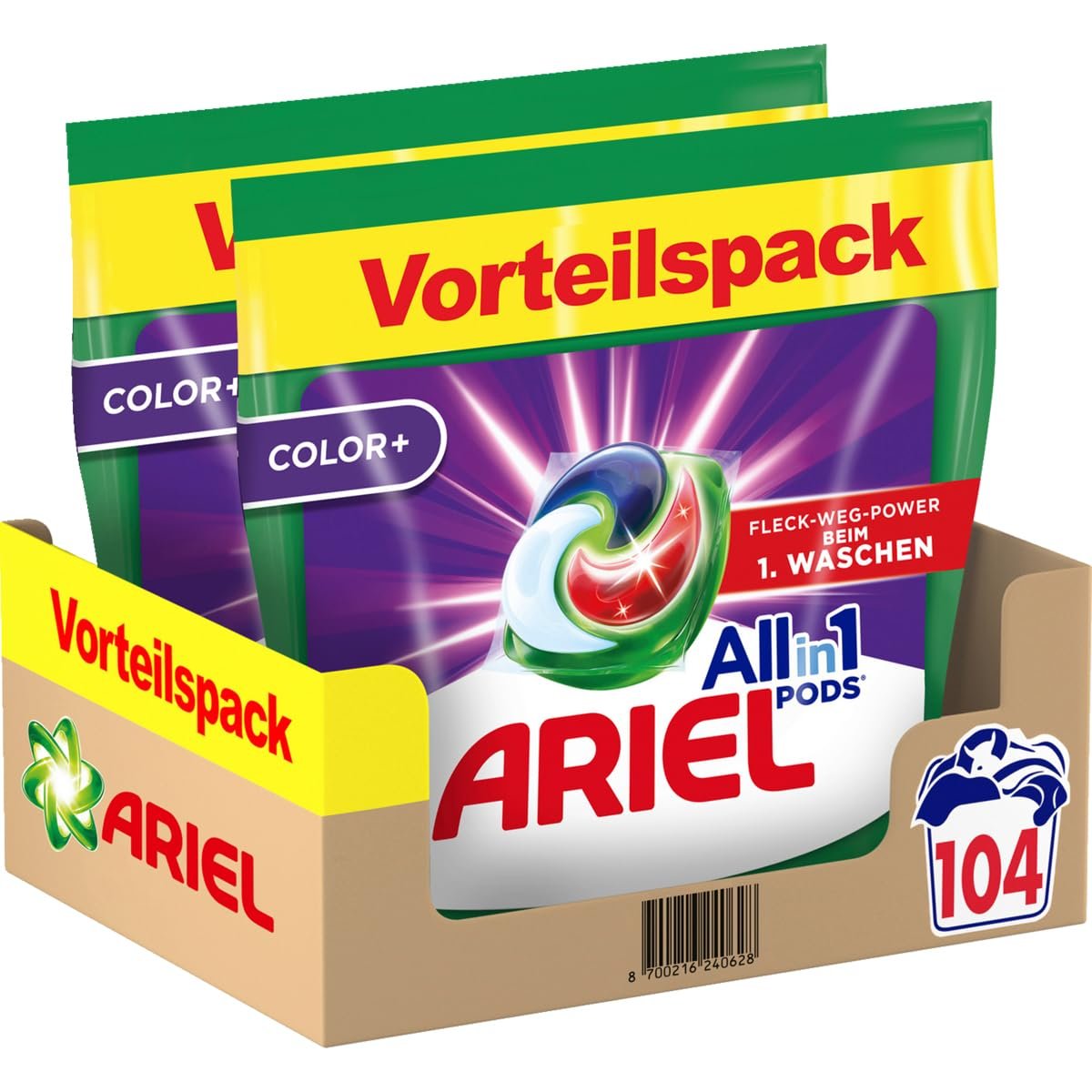 Ariel Waschmittel Pods All-in-1, Waschmittel 104 Waschladungen, Color, Kraftvolle Fleckenentfernung in nur 1 Waschgang