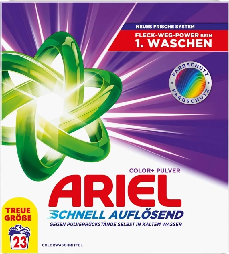 Ariel Waschpulver 1.265kg, 23 Waschladungen, Color+, Schnelle rückstandsfreie Auflösung, selbst bei niedrigen Temperaturen