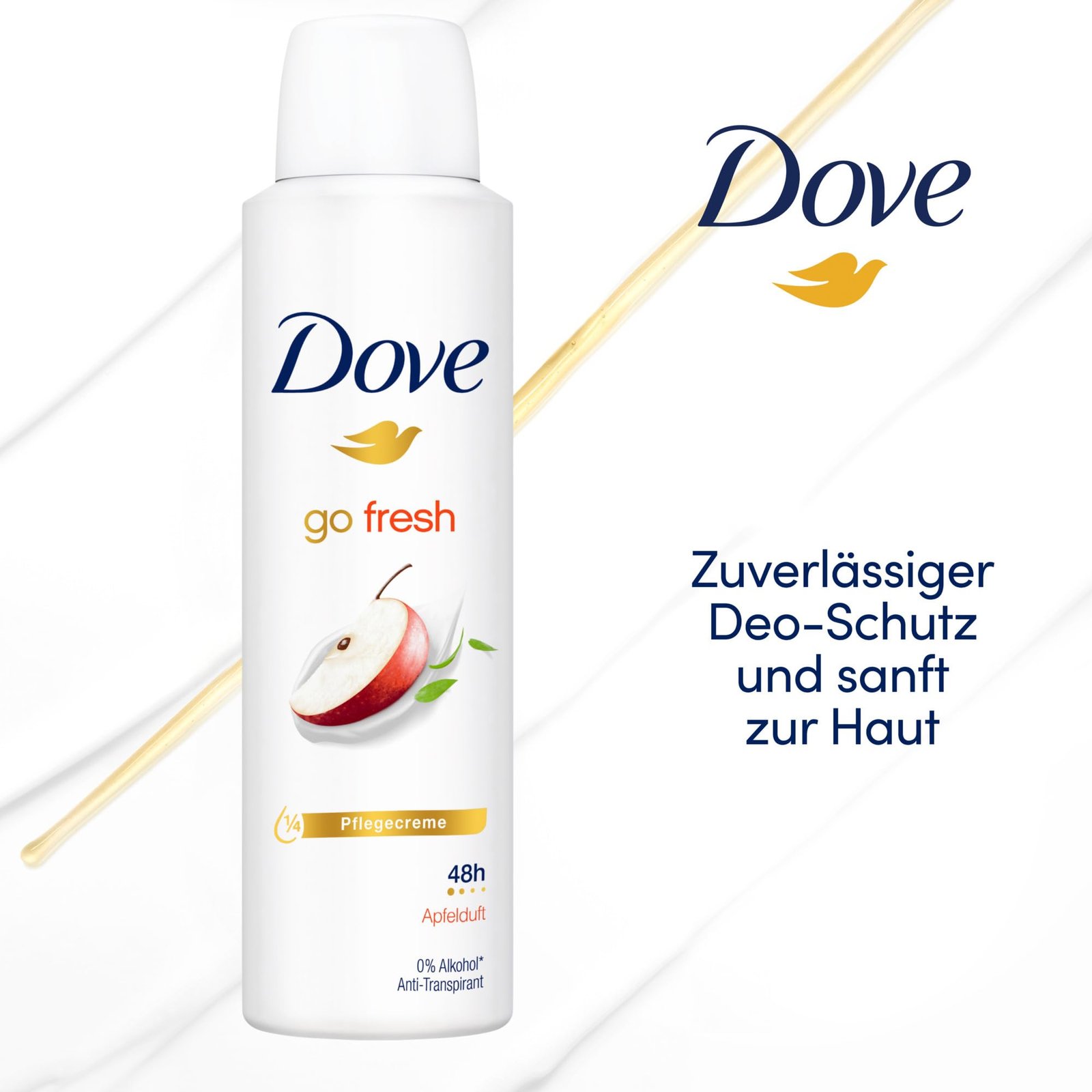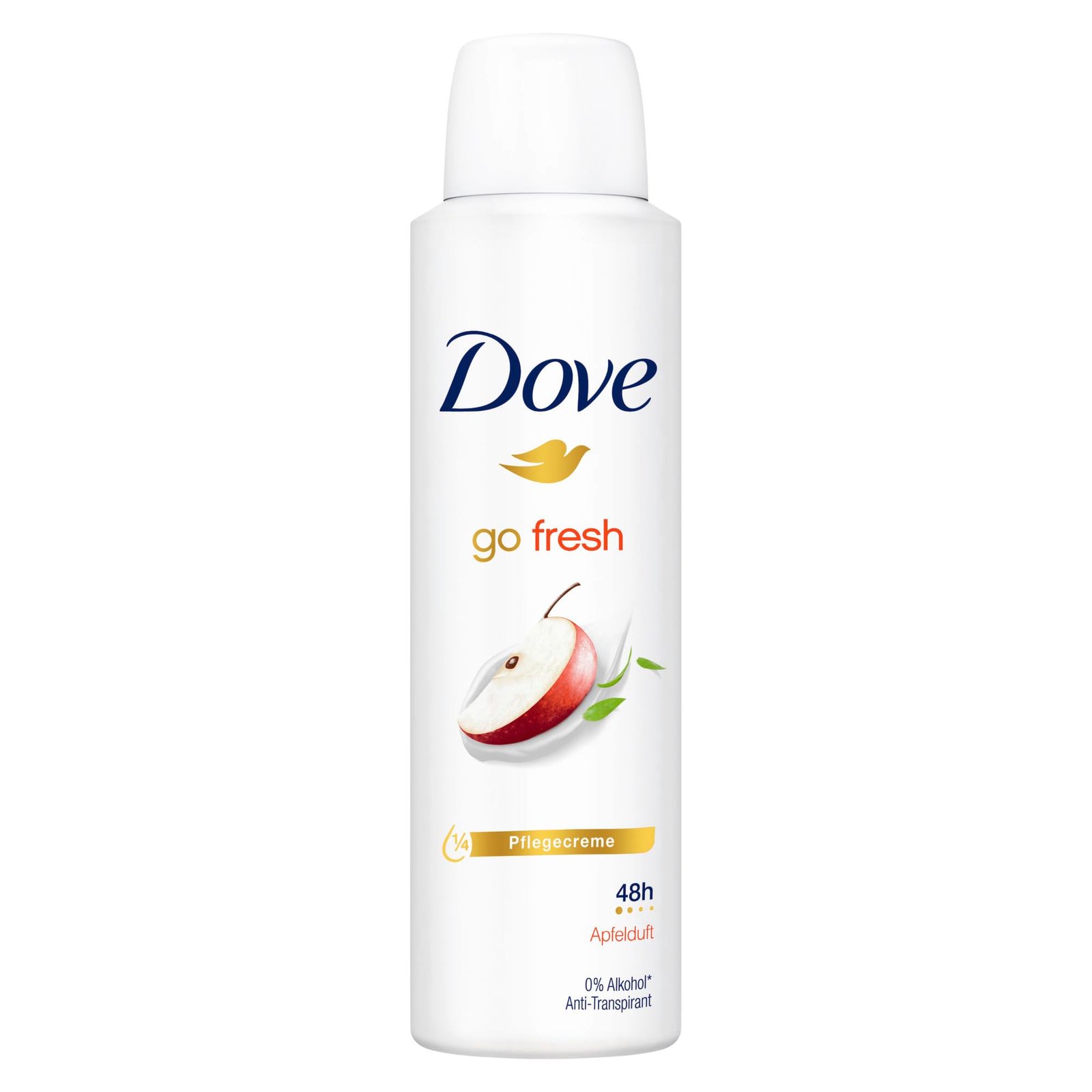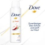 Dove Anti Transpirant Deo-Spray go fresh Apfelduft schützt bis zu 48 Stunden vor Achselnässe und Körpergeruch|Das Anti Transpirant bietet langanhaltenden Schutz und Pflege|Das Dove Deo-Spray mit 1⁄4 Pflegecreme ist sanft zur Haut|Das Deodorant verleiht einen frisch-fruchtigen Apfelduft, der die Sinne belebt|Das Aluminium der Deodorant-Spray Dosen ist unendlich oft recycelbar|Dove Deodorants sind von PETA zertifiziert. Weltweit testet Dove nicht an Tieren, nicht einmal dort, wo Tierversuche vorgeschrieben sind (weitere Informationen auf der Dove Webseite)