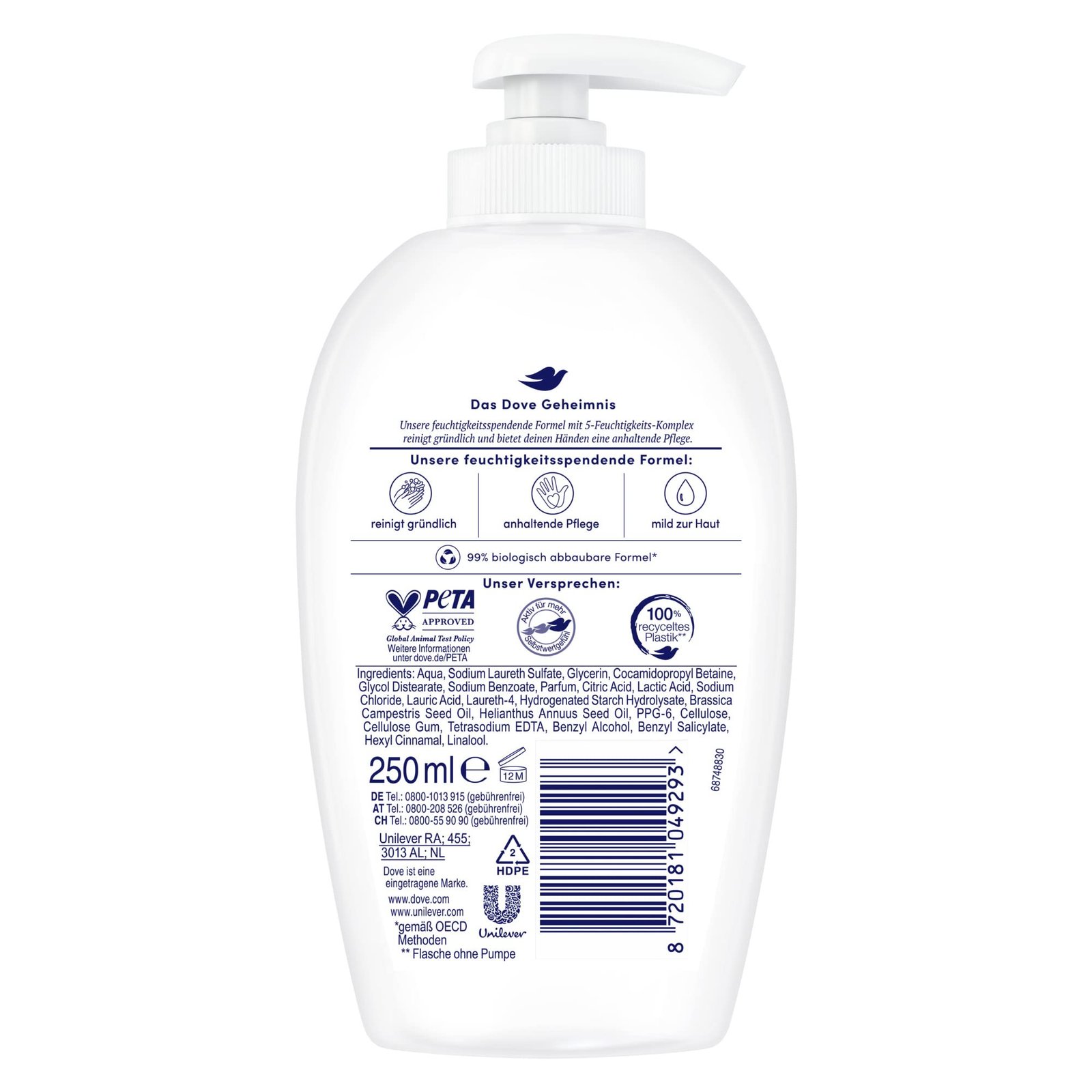 Dove Care and Protect Pflegende Hand-Waschlotion Intensive Reinigung mit antibakteriellem Effekt|Die Dove Flüssigseife reinigt gründlich und schützt die Hände vor dem Austrocknen|Die Formel der Flüssigseife mit 5-Feuchtigkeits-Komplex bietet den Händen lang anhaltende Pflege und ist gemäß OECD-Methoden zu 99 percent biologisch abbaubar|Einen Pumpstoß der Flüssigseife in die Hände geben, den cremigen Schaum gründlich verreiben und anschließend abspülen|Die flüssige Seife reinigt besonders gründlich mit antibakteriellem Effekt|Die Flüssigseife sorgt für besonders saubere, weiche und schön gepflegte Haut