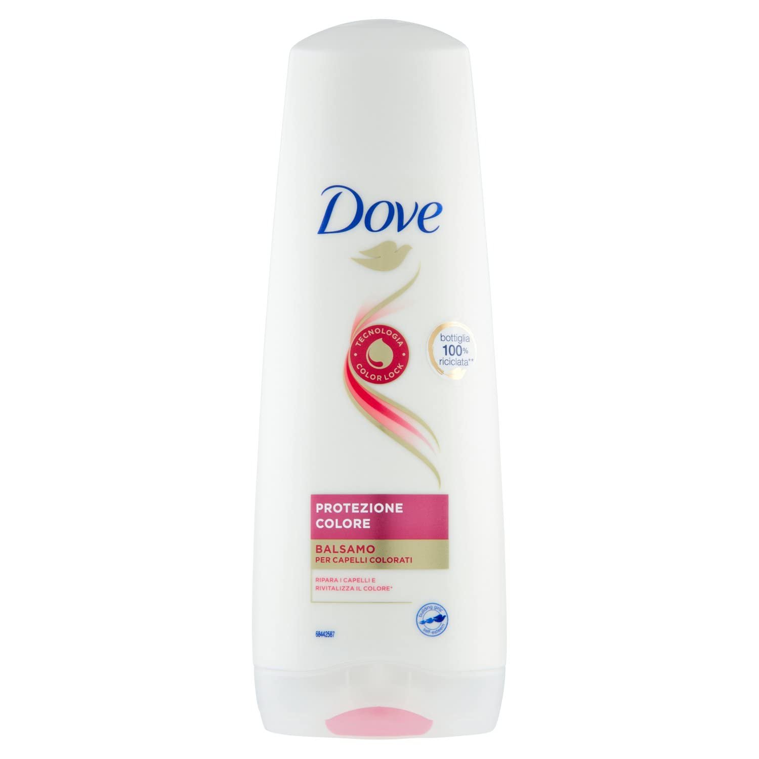 Dove Conditioner für coloriertes Haar|Mit Color Lock und Fiber Actives Technologie|Repariert das Haar und revitalisiert die Farbe|Pflegt das Haar von innen und repariert die Schäden von gefärbtem Haar für geschütztes und glänzendes Haar|Gibt Helligkeit und Farbvitalität für bis zu 10 Wochen zurück*|Für sichtbar gesunde, geschützte und glänzende Haare|Flasche aus 100% recyceltem Kunststoff (ohne Kappe)|PETA-zertifiziert|Empfohlene Benutzung: mit Dove Color Protection Shampoo