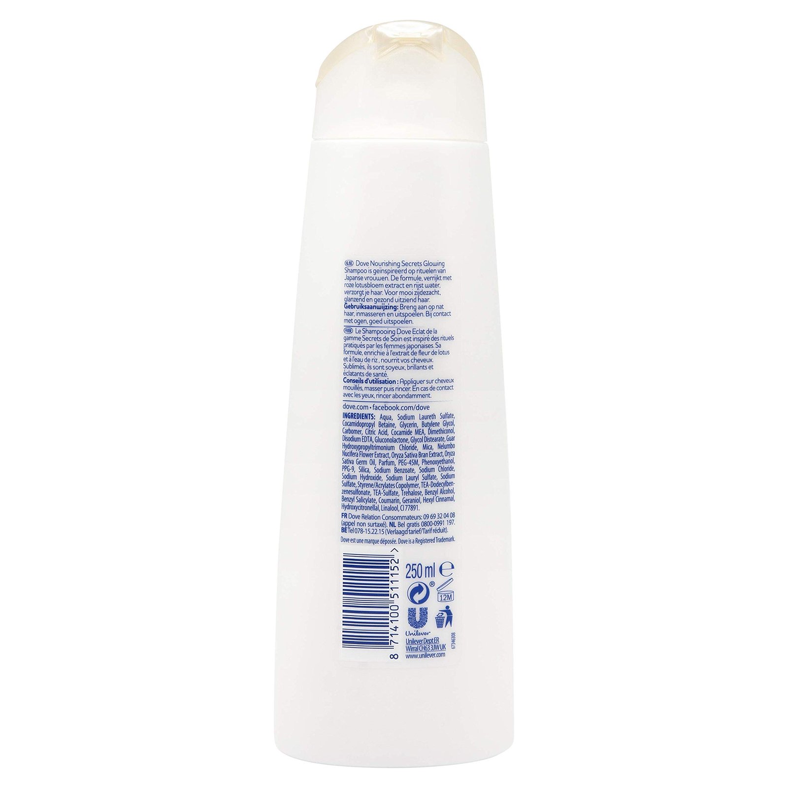 Dove Shampoo – Glowing Lotusblume – für seidiges und glattes Haar, 2er Pack (2 x 250 ml)