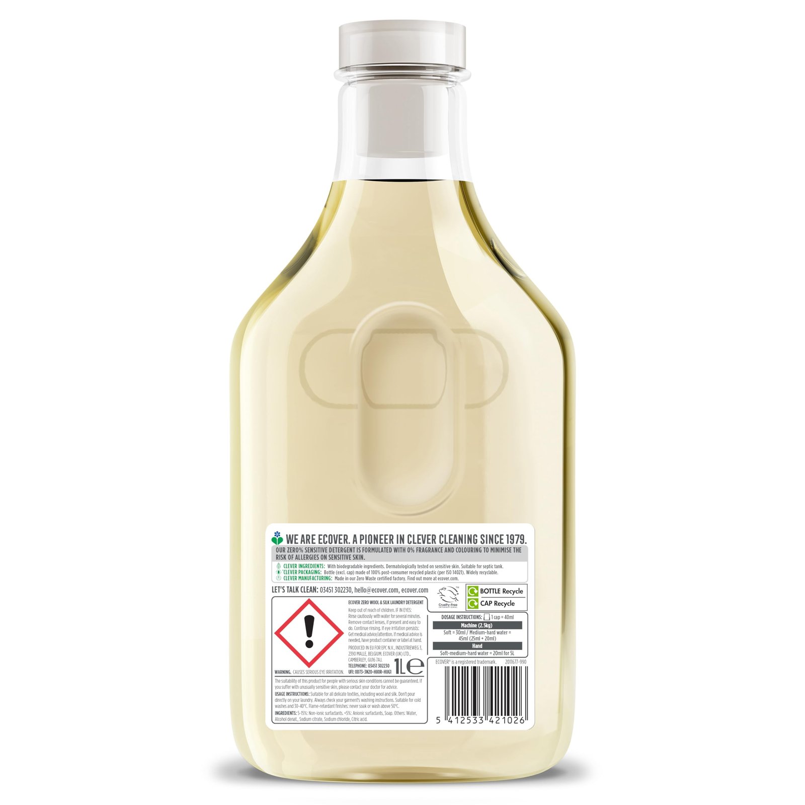 Ecover Non-Bio ZERO Woll- und Feinwaschmittel, Flüssigwaschmittel, Feinwaschmittel für Allergiker und empfindliche Babyhaut, 22 Ladungen, 1L
