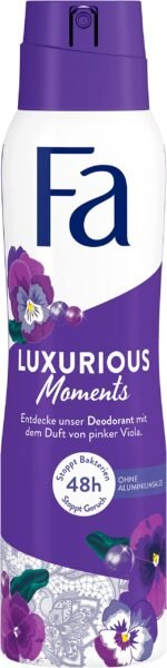 Schicke deine Sinne jeden Tag auf eine wunderbare Reise mit dem Fa Luxurious Moments Deospray und dem luxuriösen Duft der pinken Viola|Effektive Formel – Die effektive Anti-Transpirant-Formel garantiert langanhaltenden Schutz|Extra Schutz – Bis zu 48h Schutz vor Schweiß und Körpergeruch ohne Aluminiumsalze|Hautfreundlich – Dermatologisch getestete, hautfreundliche Formel mit Anti-Flecken Technologie|Vegane Formel – Das Deo mit veganer Formel ist frei von Inhaltsstoffen tierischen Ursprungs