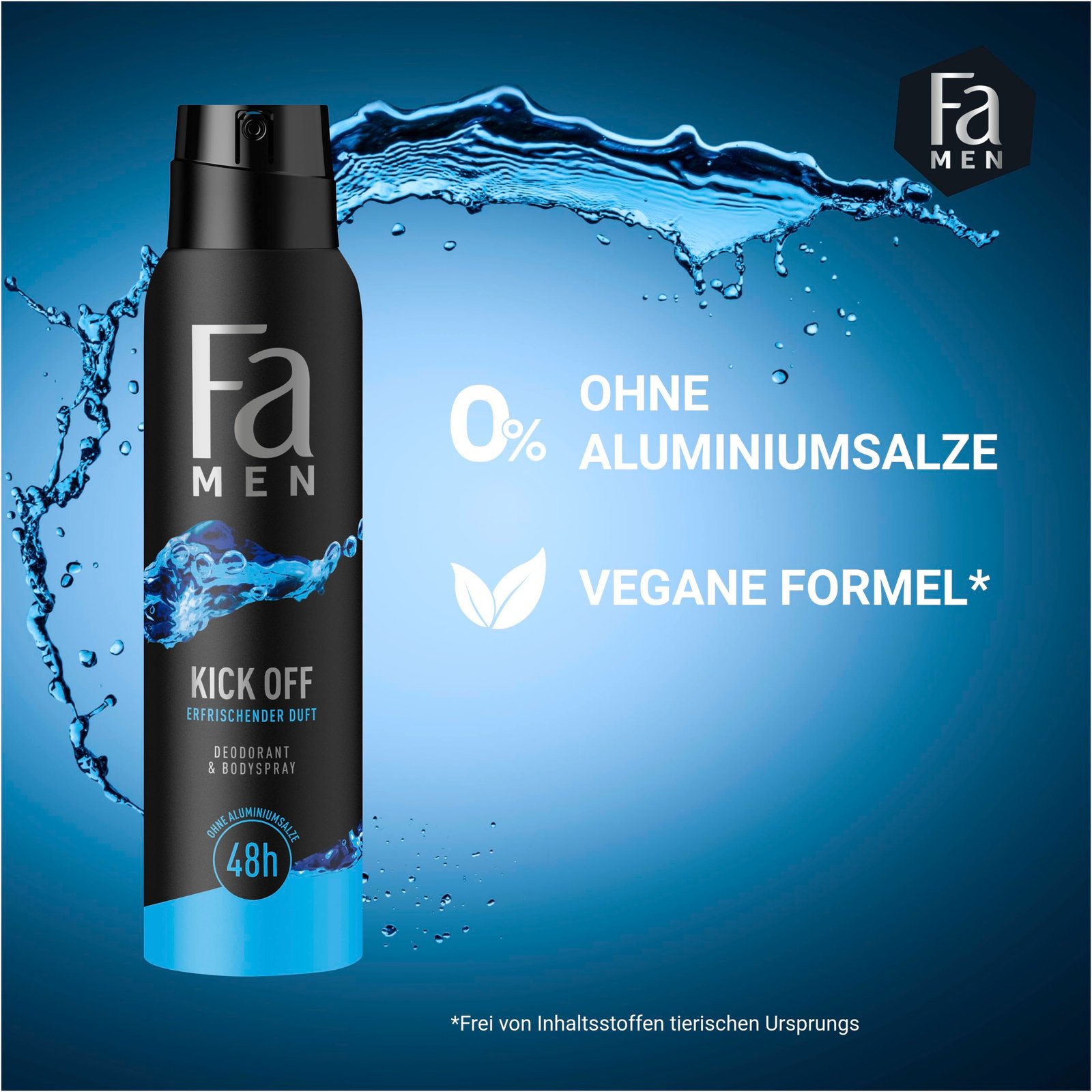Schicke deine Sinne jeden Tag auf eine wunderbare Reise mit dem Fa Kick Off Deospray|Effektive Formel – Die effektive Anti-Transpirant-Formel garantiert langanhaltenden Schutz|Extra Schutz – Bis zu 48h Schutz vor Schweiß und Körpergeruch ohne Aluminiumsalze|Hautfreundlich – Dermatologisch getestete, hautfreundliche Formel mit Anti-Flecken Technologie|Vegane Formel – Das Deo mit veganer Formel ist frei von Inhaltsstoffen tierischen Ursprungs