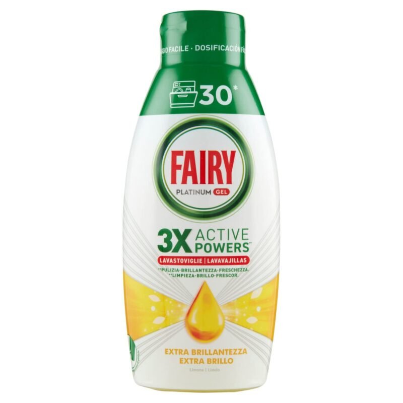 Fairy Platinum Gel Spülmaschine, Tiefenreinigung, Zitronenduft, 30 Waschgänge, schnelle Auflösung für optimale Reinigung