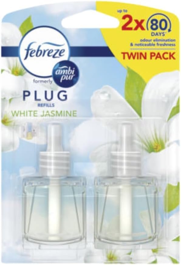 Febreze Ambi Pur Lufterfrischer Plug-in Nachfüllpackung, Megapack, 2er Pack, 6 x 20 ml, weißer Jasminduft
