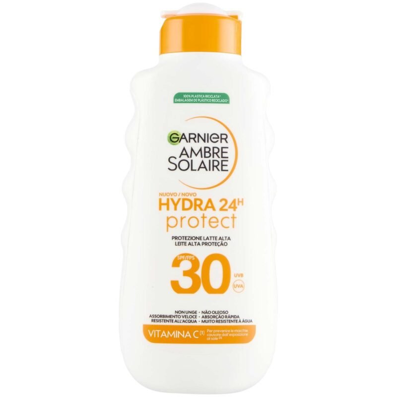 Garnier Ambre Solaire Hydra 24H Protect Milch, SPF30, 175 ml, fettfrei, wasserfest, Vitamin E, zugelassen von Cruelty-Free International