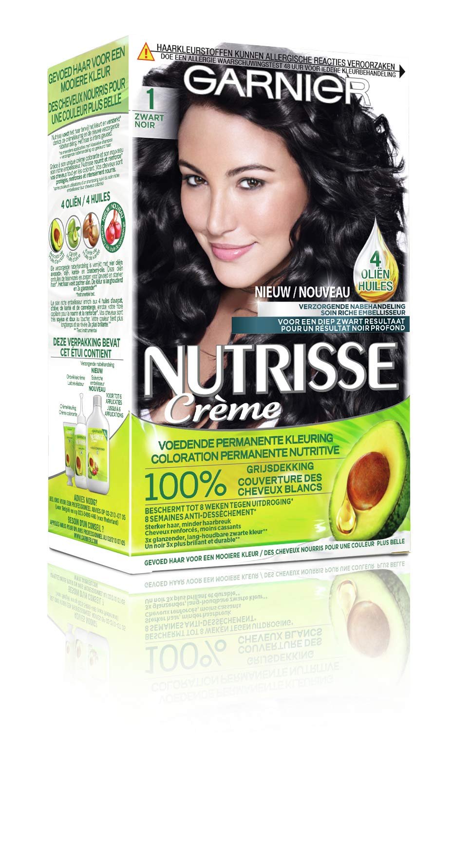 Garnier Nutrisse ist eine permanente Haarfärbung, angereichert mit pflegenden Fruchtölen (u.a|Avocado- und Traubenkernöl), dass das Haar gleichzeitig nährt und färbt.|Inhalt: 1 Set|Einfach zu bedienen