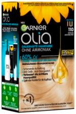 Garnier Olia 110 Kühles Aschblond Dauerhafte Haarfarbe ohne Ammoniak mit pflegenden, natürlichen Ölen, Vollständige Grauhaarabdeckung, Permanente Coloration, 1 Stück