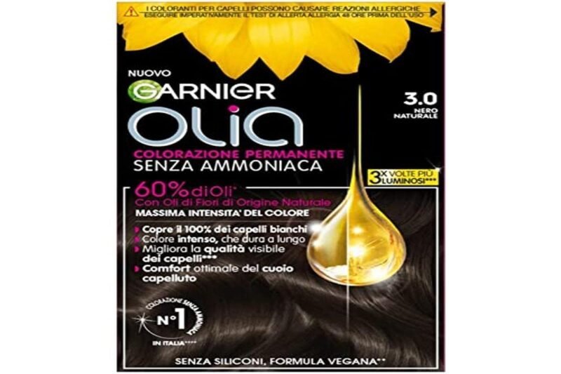 Garnier Olia Midnight Permanente Haarfarbe mit Blütenölen natürlichen Ursprungs, leichter und angenehmer blumiger Duft, samtige Creme, die nicht tropft, ultra-sensorische Anwendung|Für eine langanhaltende, intensive Farbe, deckt 100% weißes Haar ab, weicheres und glänzendes Haar, optimaler Komfort der Kopfhaut|Anwendungsempfehlung: Auf die Bereiche auftragen, wo das Haar weißer ist, 30 Minuten einwirken lassen, mit warmem Wasser abspülen und den Glanz & Seide Conditioner auftragen, 48 Stunden vor Gebrauch den Allergietest durchführen|O.D.S-Technologie: Färbung aus 60 % Ölen, die die Farbe im Inneren der Haarfaser infundieren, vegane Formel, ohne Silikone, ohne Ammoniak|Inhalt: 1 x Garnier Olia Midnight Haarfarbe, Farbe: natürliches Schwarz, das Kit beinhaltet: 1 x Detektor Creme, 1 x Farbtube 1 x Conditioner Licht & Seide ohne Silikone
