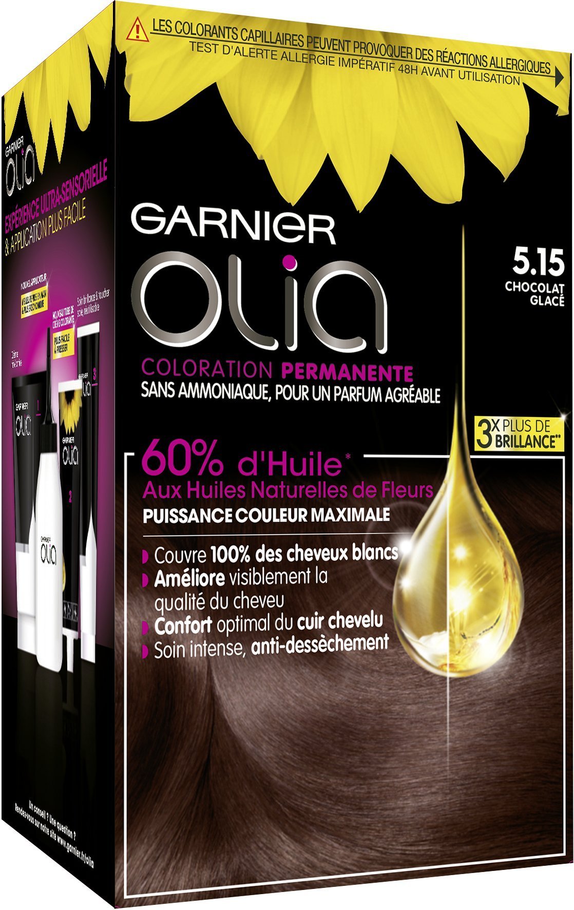 Garnier Olia permanente Haarfarbe, ohne Ammoniak, mit natürlichen Blumenölen, eisiges Schokoladenbraun (5.15)
