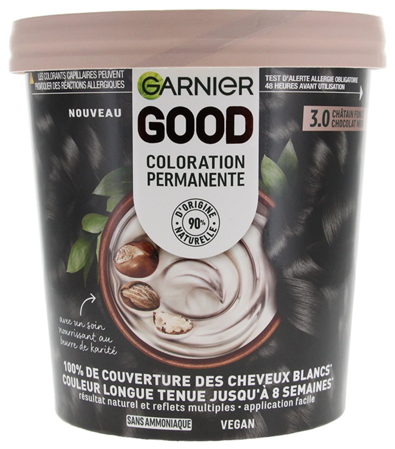 Garnier – Permanente Haarfärbung – ohne Ammoniak – 90% Inhaltsstoffe natürlichen Ursprungs – Sheabutter – 100% Abdeckung für weißes Haar – GOOD Dunkelbraun Schokoladenschwarz 3.0
