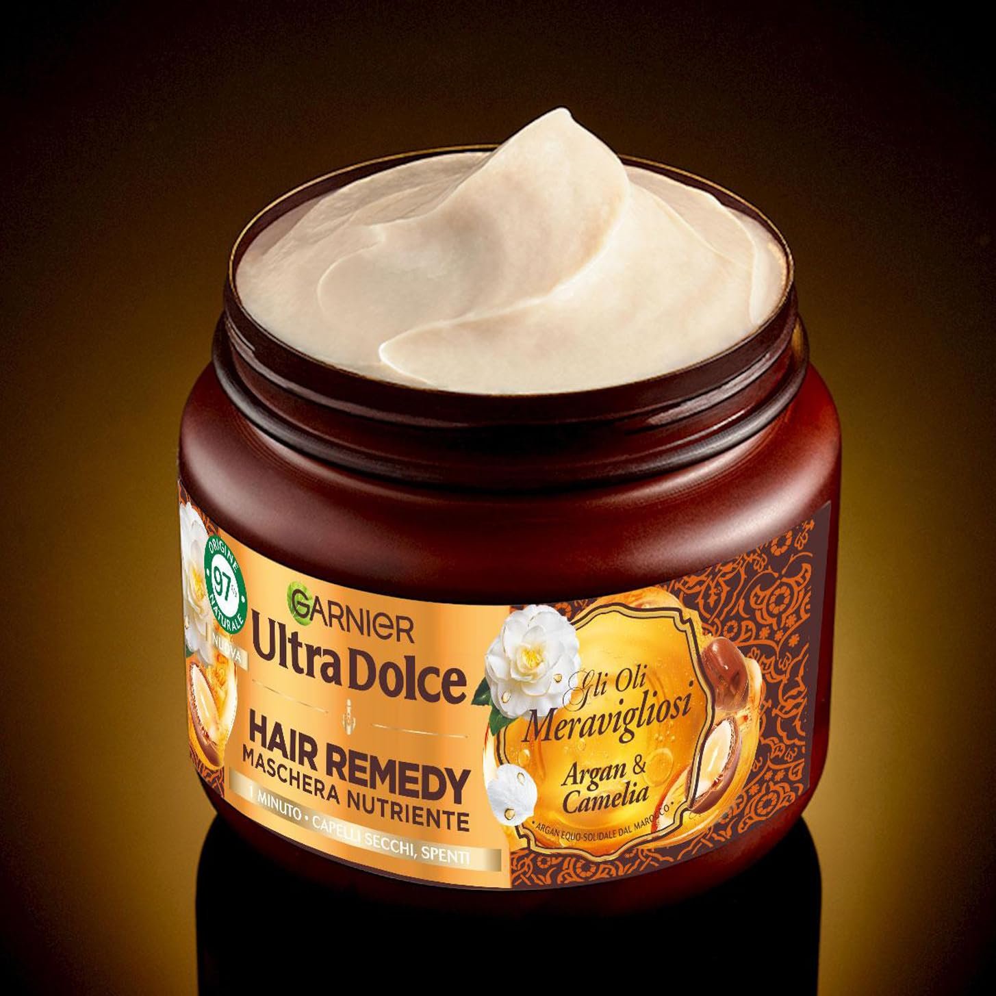 Hair Remedy Haarmaske mit Bio-Arganöl und Kamelienöl, wirkt in 1 Minute, für glänzendes und gepflegtes Haar, ohne Silikone|Nährt die Faser in der Tiefe, wirkt wie ein Nährbad für das Haar mit mehr Nährstoff* und Glanz, für ein gesundes und glänzendes Haar, *Instrumententaltest|Tragen Sie unser Mittel großzügig auf das nasse Haar auf, warten Sie eine Minute und spülen Sie es aus|Formel angereichert mit zwei wertvollen Ölen: pflegendes Bio-Arganöl und aufhellendes Kamelienöl, ohne Silikone, Inhaltsstoffe zu 97% natürlichen Ursprungs, cremige Textur|Inhalt: 1 x Garnier ultra-süße pflegende Maske, für trockenes und glanzloses Haar, Wirkung in 1 Minute, mit Bio-Arganöl und Kamelienöl, wunderbare Öle, Hair Remedy, 340 ml