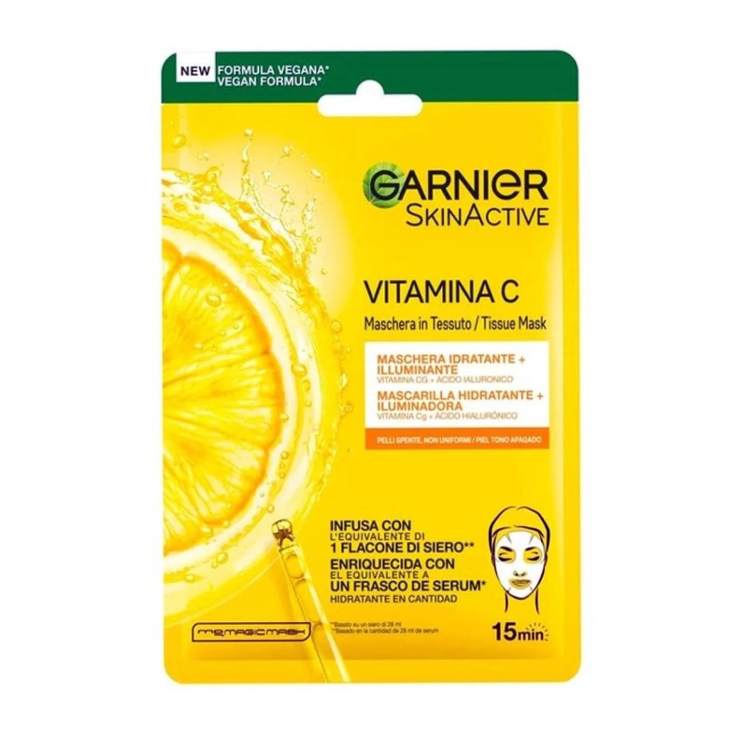 Garnier Vitamin C Liquids Aufhellende Gesichtsbehandlung, vegane Formel, 120 ml und 3 Gesichtsmasken aus aufhellendem Stoff