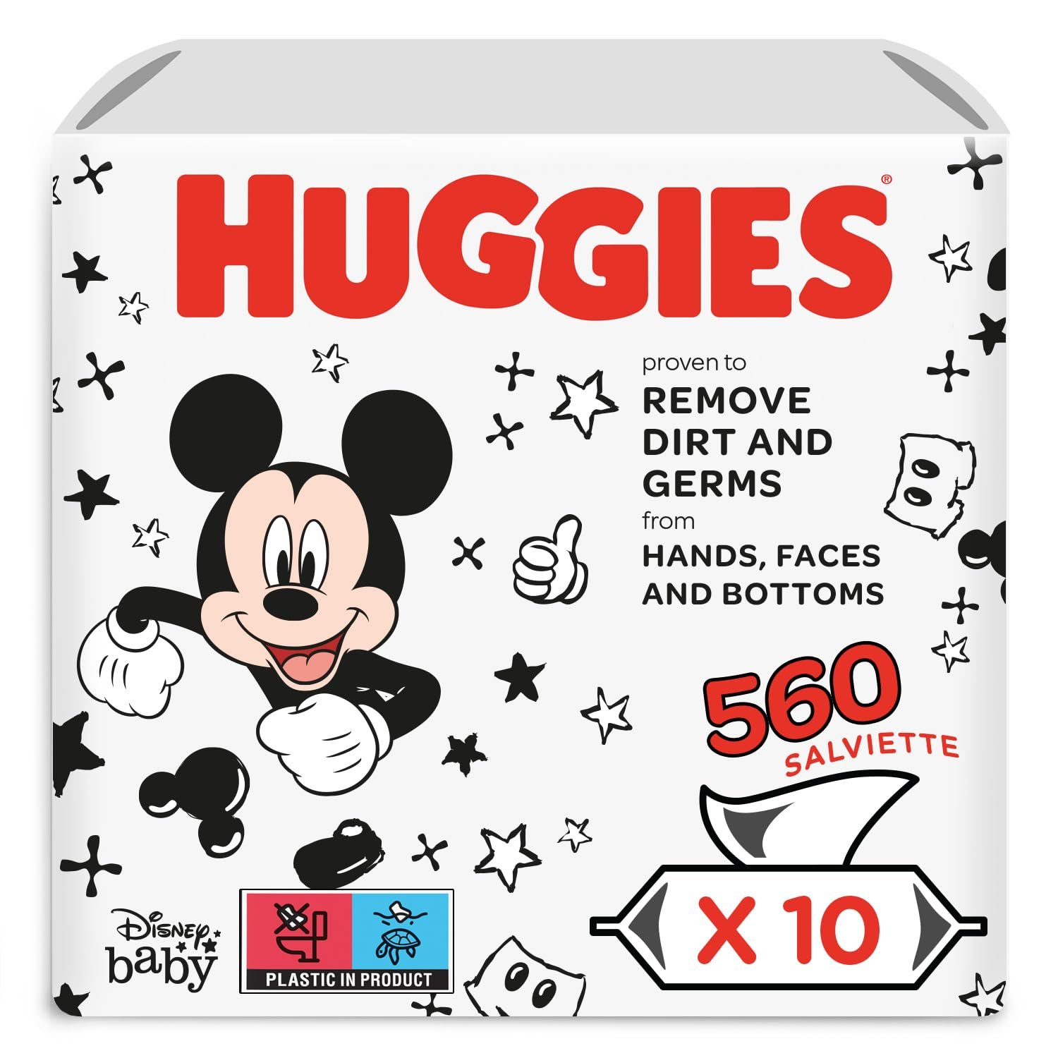 Saugfähige und weiche Feuchttücher zur Reinigung und Pflege sensibler Babyhaut an Gesicht, Händen und Po von Neugeborenen vom ersten Tag an – 10 x 56 Tücher Monatsbox|Klinisch getestet und hypoallergen – hygienische Reinigung ohne Zusatzstoffe wie Phenoxyethanol und Parabene sowie 0 Prozent Alkohol|Für den ganzen Körper geeignet – die Tücher entfernen Schmutz und Keime von Hände, Gesicht und Po|Ideal für die ganze Familie unterwegs oder zuhause: Wiederverschließbar zum Schutz vor Austrocknen; Einfache Einzelentnahme der Baby-Tücher mit einer Hand|Lieferumfang: Huggies Baby-Pflegetücher der Disney Reihe; Monatspackung mit 10 x 56 Reinigungstücher, ideale Ergänzung zu Huggies Baby-Windeln