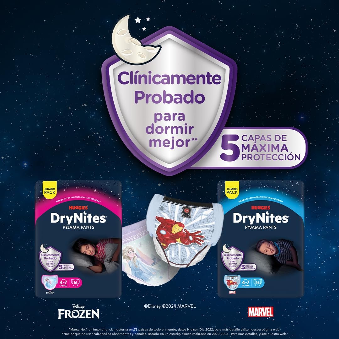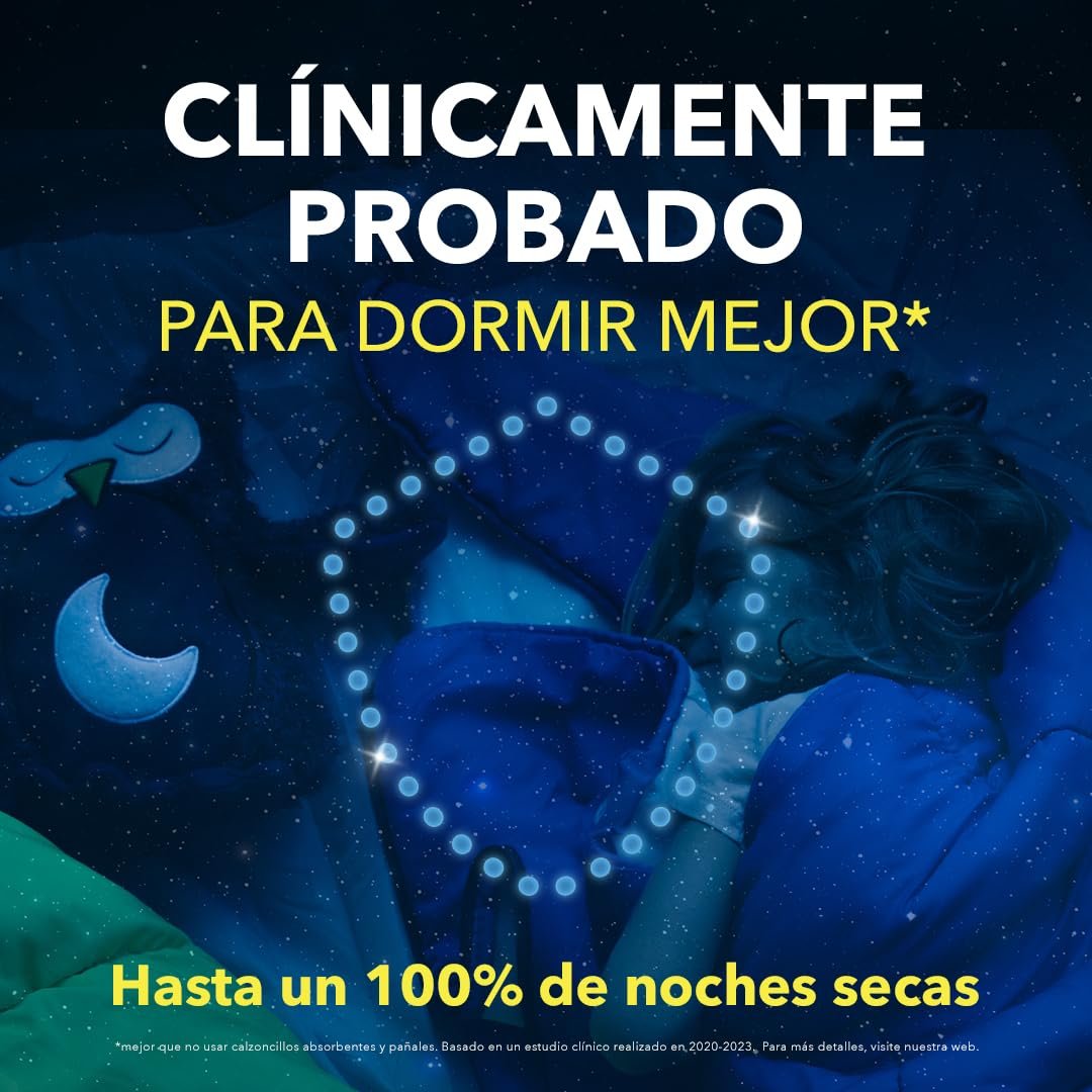 Dry Nites Hilft Ihrem Kind, sich rund um die Uhr wohl zu fühlen. Die Nachthöschen für heranwachsende Mädchen und Jungs, sorgen für einen erholsamen Schlaf ohne nächtliche Störungen. DryNites bietet Ihrem Kind optimalen Schutz, um nächtliche Ruhestörungen zu umgehen. Für Kinder zwischen 3 und 15 Jahren, die in der Nacht öfter auf Toilette müssen, kann so in Zukunft nichts mehr daneben gehen. Mit DryNites erhalten Sie und Ihr Kind einen ruhigen Schlaf, denn die Nachthöschen für heranwachsende Kinder sorgen für einen trockenen und sicheren Schutz. Stärken Sie Ihre Bindung zu Ihrem Kind und schimpfen Sie es nicht aus, wenn es bettnässt. Geben Sie Ihrem Kind ein Gefühl von Sicherheit mit Dry Nites. Denn die Unterwäsche lässt sich optisch nicht von anderen Nachthöschen unterscheiden und steht in vielen altersgerechten Designs zur Auswahl. Seitlich dehnbar sorgen sie für einen bequemen Sitz in der gesamten Nacht. Sorgen Sie jetzt für eine ruhige und entspannte Nacht. Die absorbierende Schutzfunktion wirkt diskret und zuverlässig zugleich. Helfen Sie dadurch Ihrem Kind, mit dem Bettnässen umzugehen. Das feuchtigkeitsundurchlässige Außenmaterial lässt sich kaum von herkömmlicher Unterwäsche unterscheiden und fühlt sich wie eine normale Nachtwäsche an.