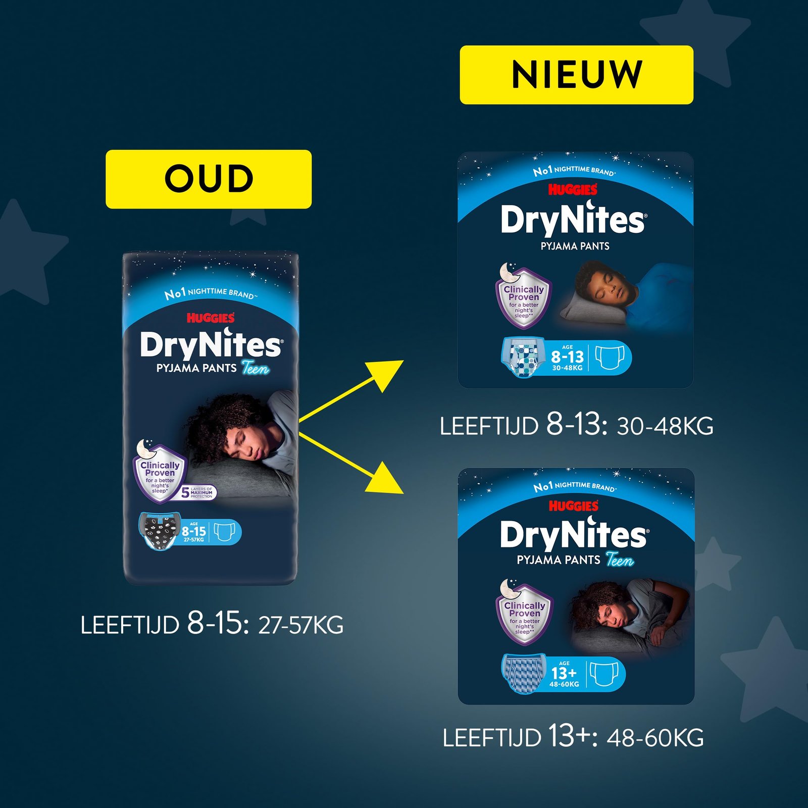 Für trockene und erholsame Nächte: Einweg Pyjama Pants zur Unterstützung beim Trockenwerden sowie zum Schutz in Phasen des Bettnässens; Geeignet für Jungen ab 13 bis ca. 17 Jahre (48-60 KG)|Klinisch geprüft. 5 stark absorbierende Lagen und mittig angeordnete Schutzzone speziell für Jungen; Für trockene Kleidung und Betttextilien|Diskrete Lösung für Kinder ab 13 Jahren: Spezielles, geräuscharmes Material und cooles Design; Passform fast wie Unterwäsche|Bequeme Windelhose mit dehnbarem, weichem Bündchen zum einfachen An- und Ausziehen; Idealer Tragekomfort die ganze Nacht|Lieferumfang: 3 x 11 DryNites Nacht-Windeln (33 St.), für Jungen im Alter von 13 bis ca. 17 Jahren (48-60 KG), Großpackung