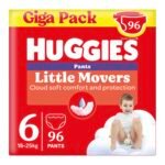 Atmungsaktive Little Movers Windelhosen Größe 6 für Babys und Kleinkinder ab dem Krabbelalter mit einem Gewicht von 15 bis 25 kg; Schutz und Komfort; tolle Packung für 1 Monatsverbrauch|QUICK DRY TECHNOLOGIE: Die Quick Dry Technologie sorgt für eine schnelle Absorption und die Haut Ihres Babys bleibt immer trocken|Weich und bequem: Huggies Windeln sind super einfach an- und auszuziehen wie ein Höschen und bieten die gleiche Saugfähigkeit wie eine Windel|Wechselanzeige: Dank der blauen Nässeanzeige ist es leicht zu erkennen, wann es Zeit ist, die Windel zu wechseln|Lieferumfang: Huggies Ultra Comfort Pants Größe 6; Vorratspack; 2 x 48 Stück (96 Windel-Pants insgesamt), Monatspackung, Großpackung
