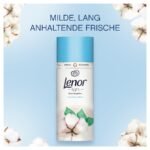 Zu jeder Wäsche hinzufügen für milde, lang anhaltende Frische|Lenor Wäscheparfüm enthält 0 % Farbstoffe|Dermatologisch getestet|Für alle Textilien geeignet, sogar Wolle, Seide und Sportkleidung|Geben Sie das Wäscheparfüm direkt in die leere Trommel, bevor Sie die Wäsche hinzufügen