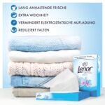 Frische duftende Wäsche selbst nach dem Trocknen|Verringern Faltenbildung und erleichtern das Bügeln|Vermindern elektrostatische Aufladungen|In dem beliebten Lenor Duft Aprilfrisch”|Bewährte Weichheit und Frische”