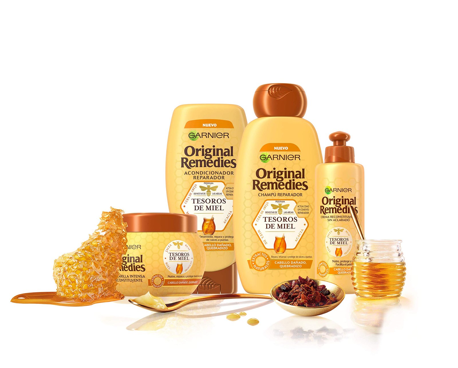 Das Produkt stellt ein Shampoo dar.|Mit Honigschätzen|Es ist von der Marke Garnier