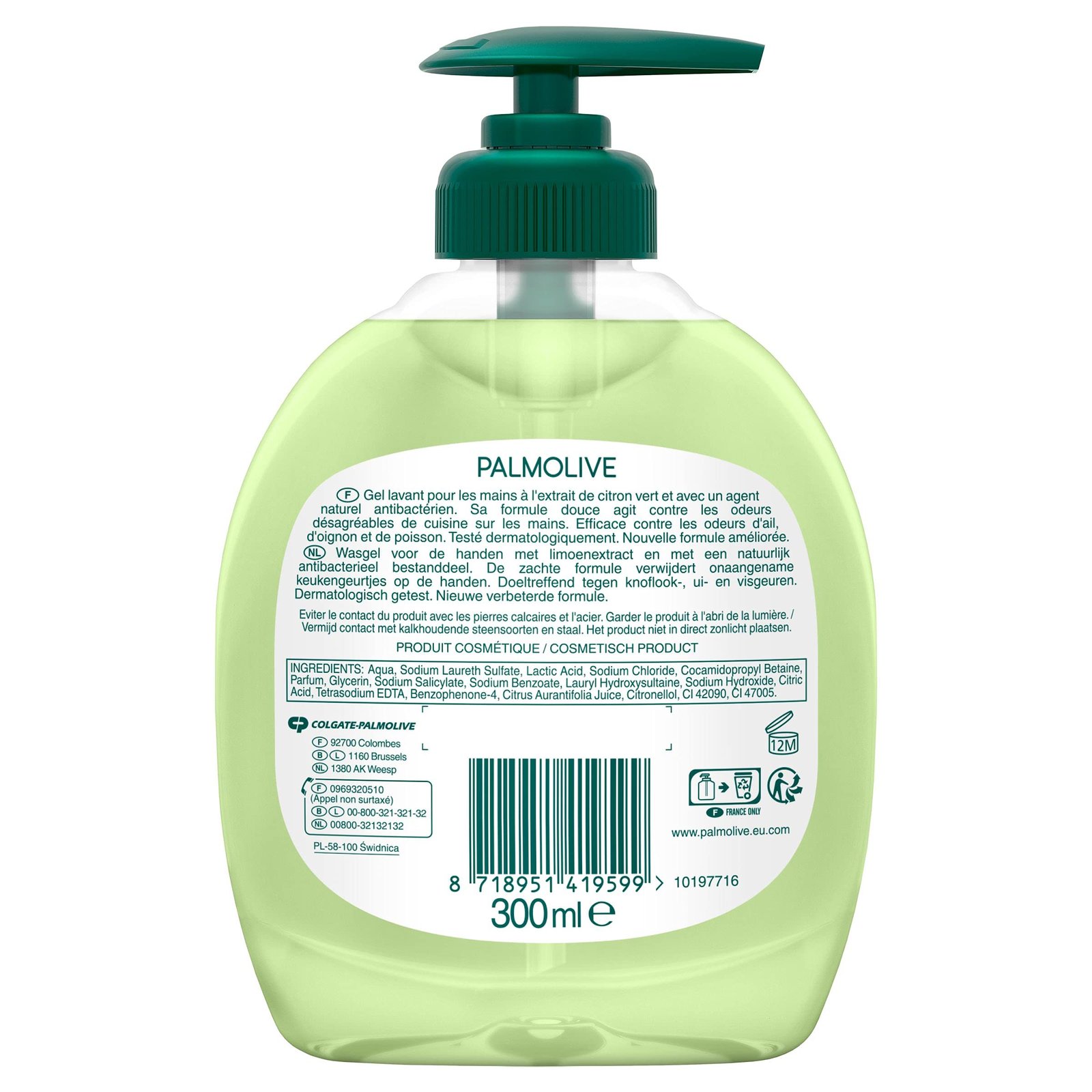 Die Flüssigseife Palmolive Hygiene Plus ist ein Waschgel mit einer speziell entwickelten Formel, die Ihnen hilft, die optimale Hygiene Ihrer Hände beim Kochen oder Umgang mit Lebensmitteln zu erhalten.|Anti-Geruchs-Waschgel: Palmolive Flüssigseife Hygiene Plus für die Hände enthält Limettenextrakt, der für seine Fähigkeit bekannt ist, hartnäckige Gerüche (Knoblauch, Zwiebeln, Fisch) und einen natürlichen Wirkstoff zu entfernen.|Hautfreundlich: Dermatologisch getestet, die Flüssigseife von Palmolive reinigt die Hände sanft, um die Integrität der Haut zu erhalten und sie gleichzeitig zu reinigen.|Gebrauchsanweisung: Für eine einfache Reinigung der Hände gehen Sie wie gewohnt vor. Für eine optimale Hautwäsche sollte die Palmolive Seife gut auf alle Hände verteilt und anschließend ausgespült werden.|PALMOLIVE, Spezialist für Hygiene: Seit über 100 Jahren bietet Palmolive seinen Verbrauchern Körper-, Hände- und Haarwaschmittel sowie wirksame und hautfreundliche Reinigungsmittel.