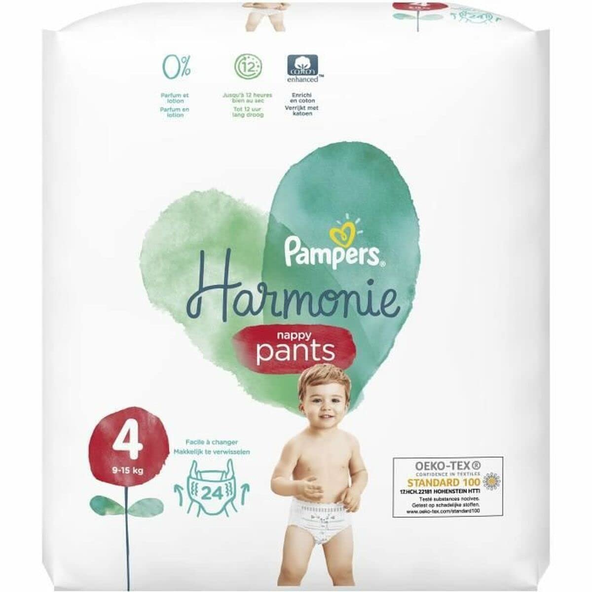 Pampers Harmonie Slips schonen die zarte Haut Ihres Babys, auch wenn es wächst. Sie enthalten hochwertige Baumwolle und sorgen für 100% Saugfähigkeit, damit Ihr Baby bis zu 12 Stunden trocken bleibt. Ohne Lotion, Parfüm und Allergene, zertifiziert nach Öko-Tex-Standard 100.