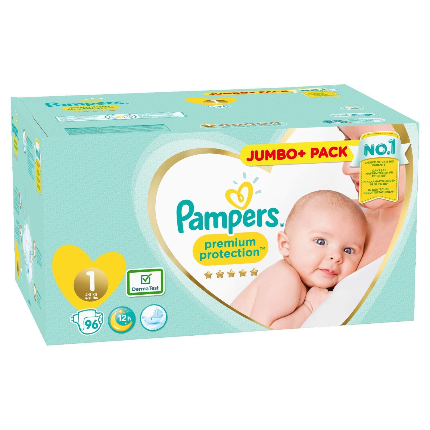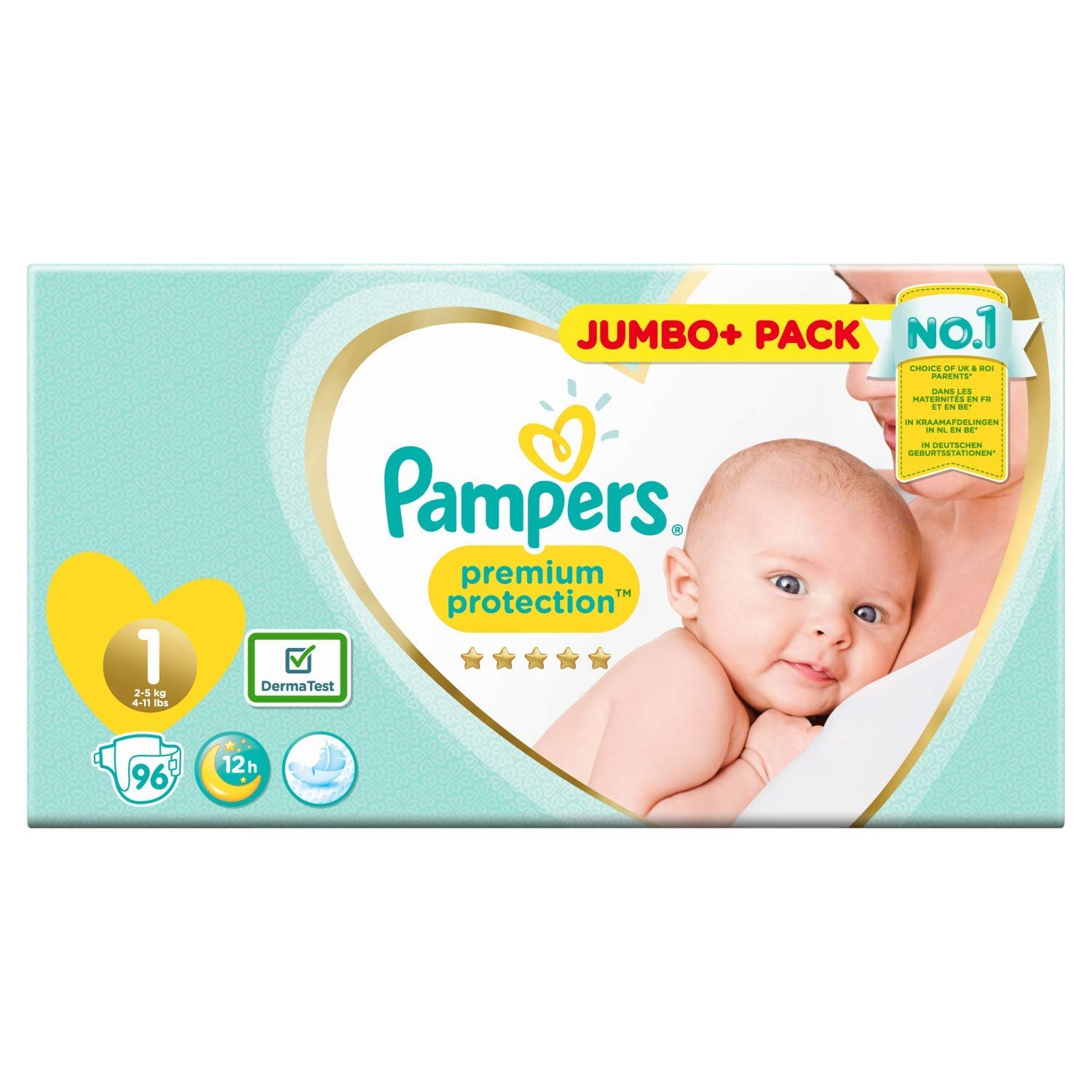 Pampers Baby-Windeln, Große 1 (25 kg), Premium-Schutz, (neues Baby), 144 Stück, Jumbo-Pack Duo, Baby-Essentials für Neugeborene