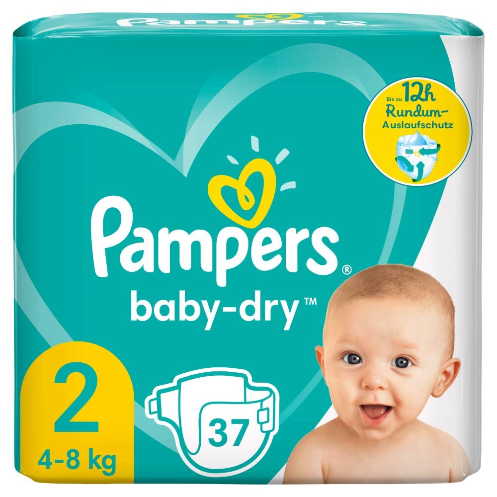 Pampers Baby-Dry Große 2, 37 Windeln, bis zu 12 Stunden Rundumschutz, 4-8kg