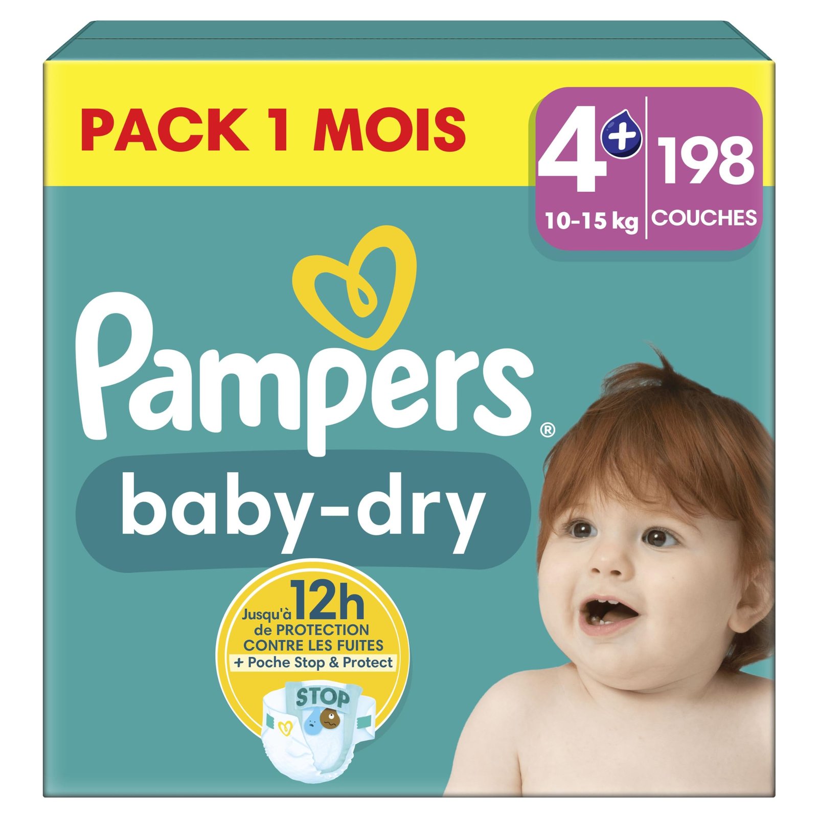 Pampers Baby-Dry Große 4+, 198 Windeln, 10kg-15kg, Bis zu 100% Auslaufschutz & Komfort die ganze Nacht