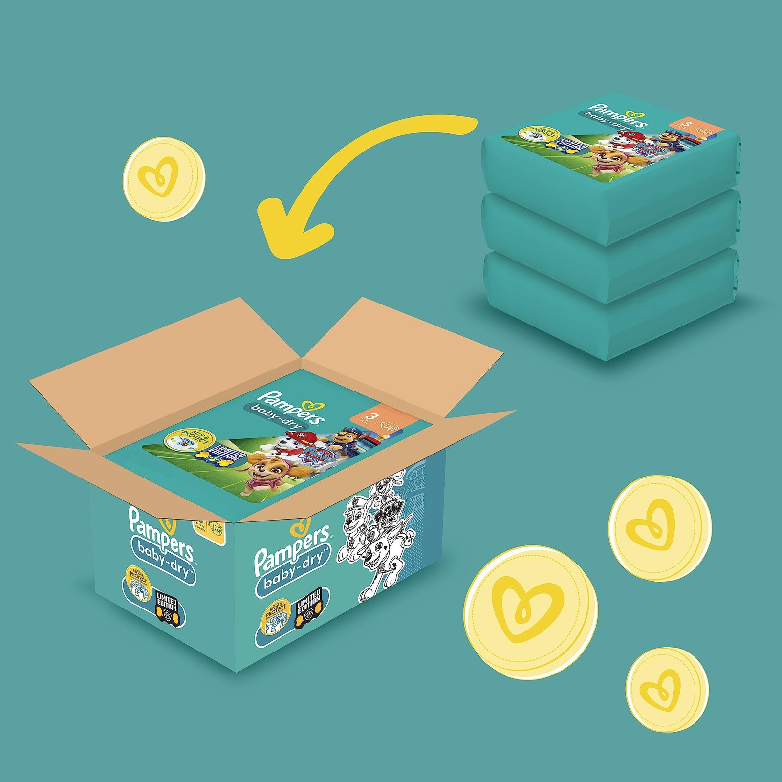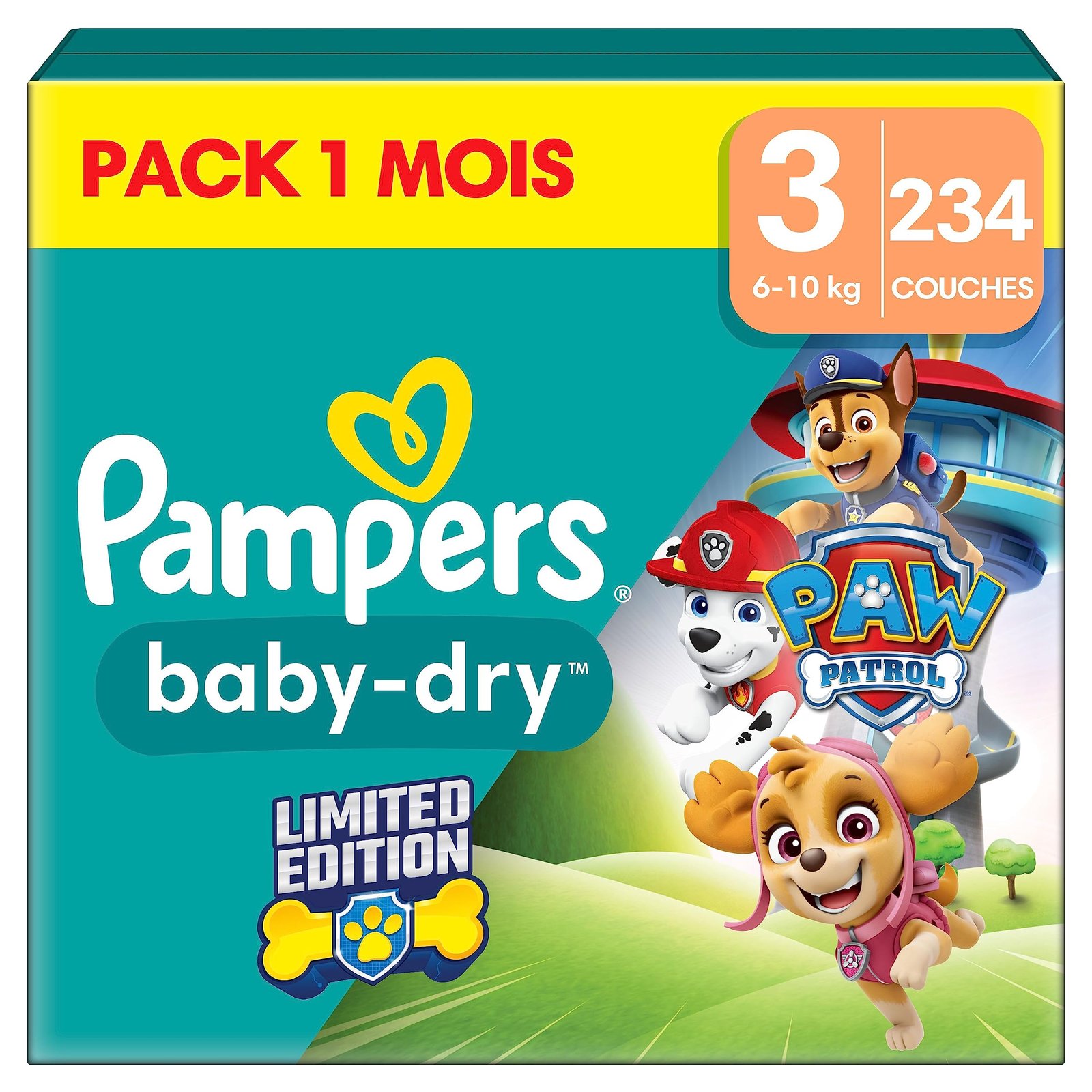 Pampers Baby-Dry Paw Patrol Edition Große 3, 234 Windeln, 6kg-10kg, Bis zu 100% Auslaufsicher & Komfortable Nacht