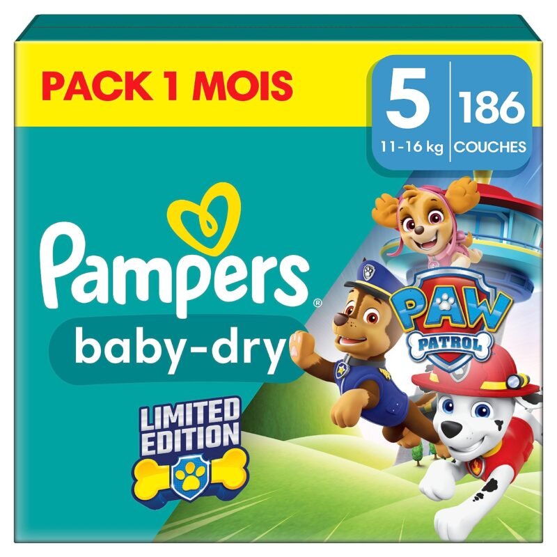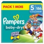 Pampers Baby-Dry Paw Patrol Edition Große 5, 186 Windeln, 11kg-16kg, Bis zu 100% Auslaufsicher & Komfortable Nacht