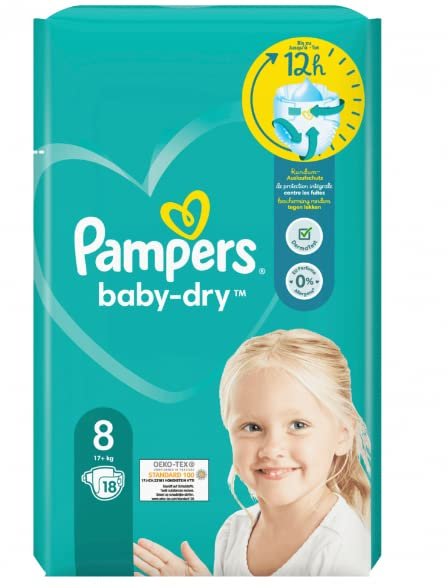 Pampers Baby Windeln Große 8 (17kg+) Baby-Dry, Extra Large, 18 Stück, SINGLE PACK, bis zu 12 Stunden Rundum-Auslaufschutz