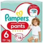 Pampers Baby Windeln Pants Große 6 (15kg+) Premium Protection, Extra Large, 15 Höschenwindeln, SINGLE PACK, mit Stop- und Schutz Täschchen